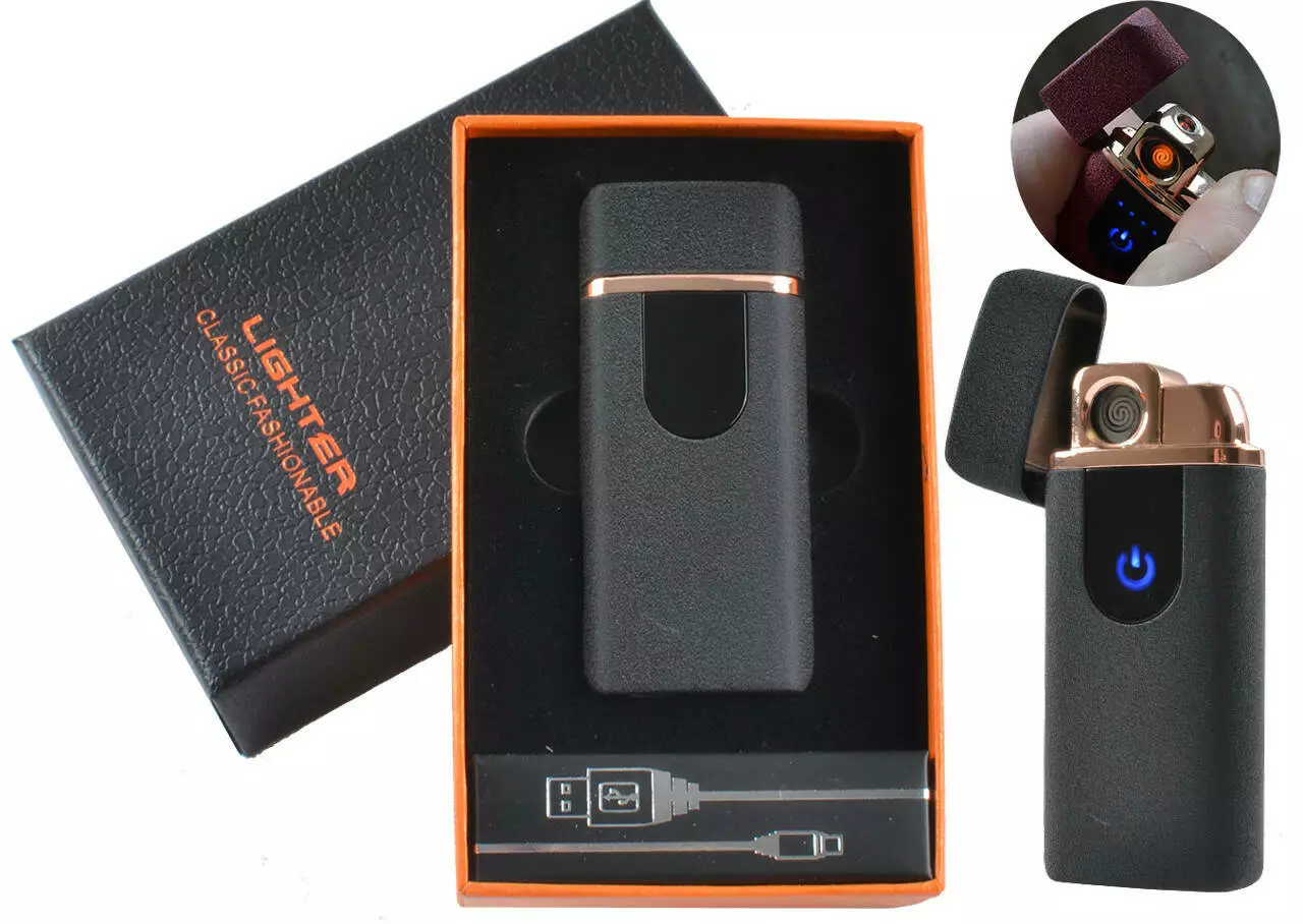 USB - Зажигалка газовая (Турбо пламя + спираль накаливания) индикатор заряда HL-248 Black sand