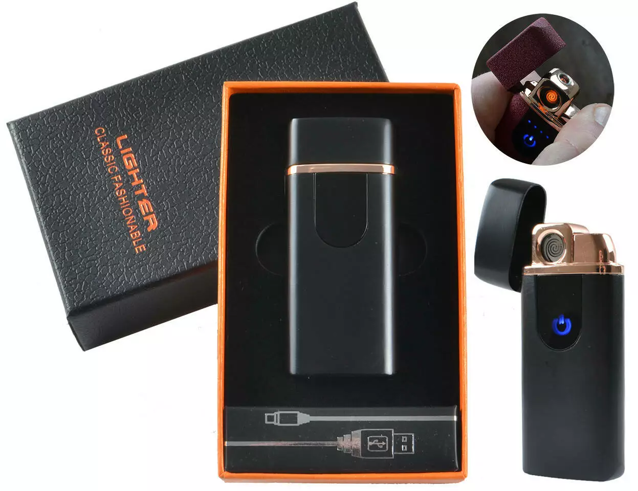 USB - Газовая Зажигалка (Турбо пламя + спираль накаливания) индикатор заряда HL-248 Business Black