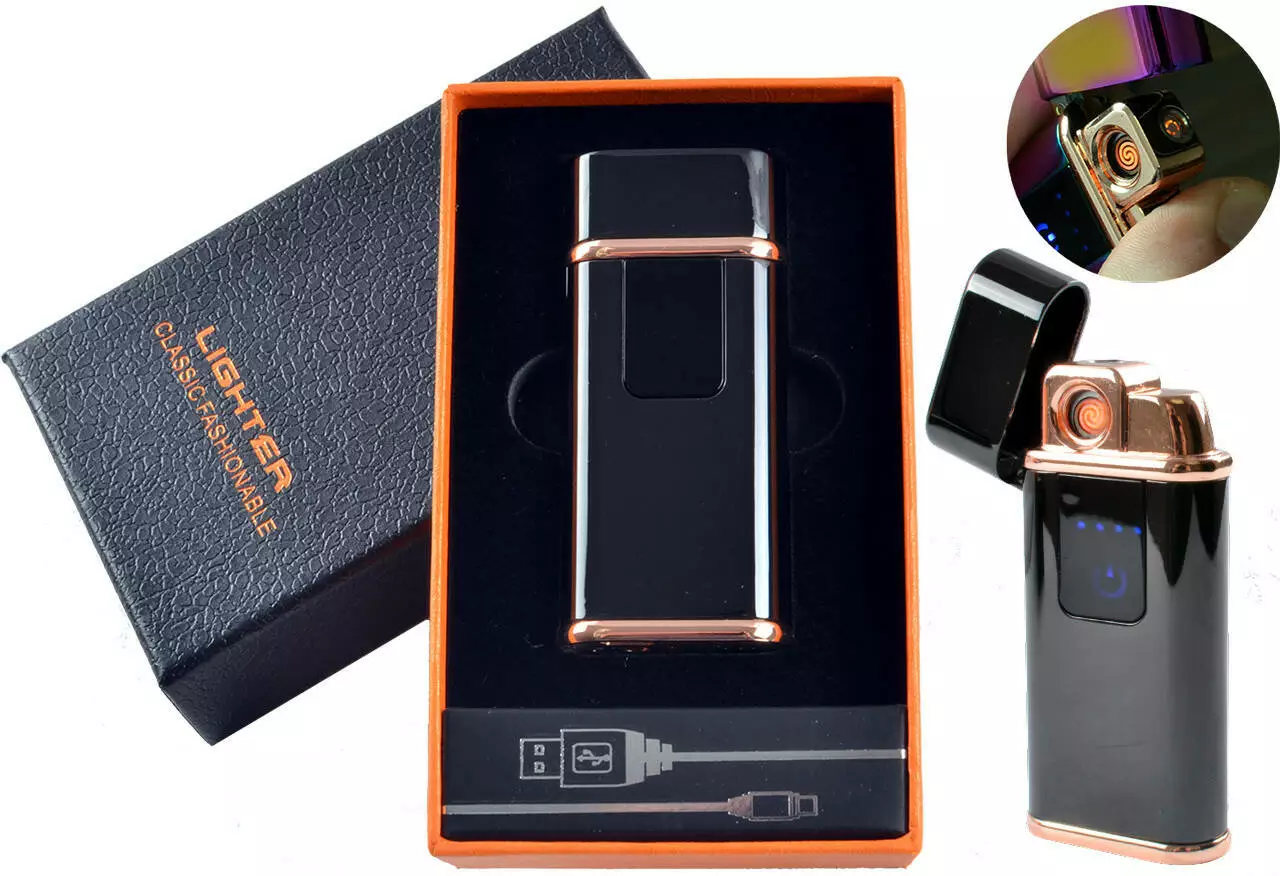 USB - Газовая Зажигалка (Турбо пламя + спираль накаливания) индикатор заряда HL-251 Black ice