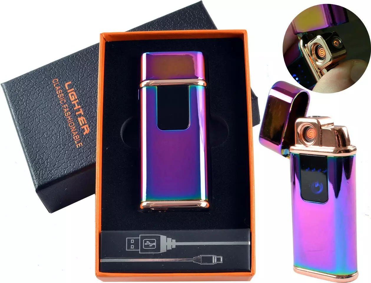 USB - Газовая Зажигалка (Турбо пламя + спираль накаливания) индикатор заряда HL-251 Colored ice