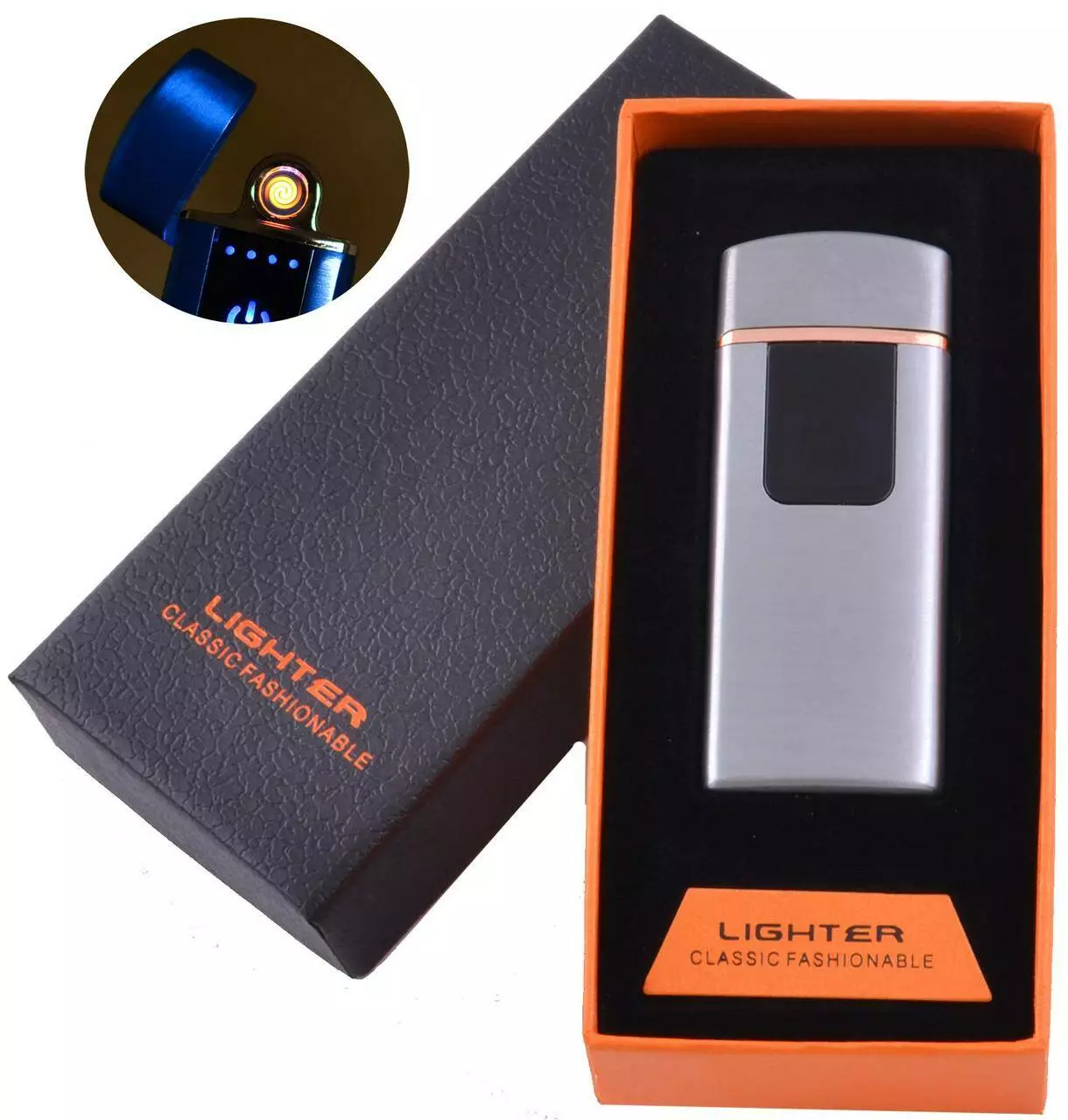 Сенсорная USB зажигалка ⚡️ в подарочной коробке ???? LIGHTER (Спираль накаливания) HL-132 Silver