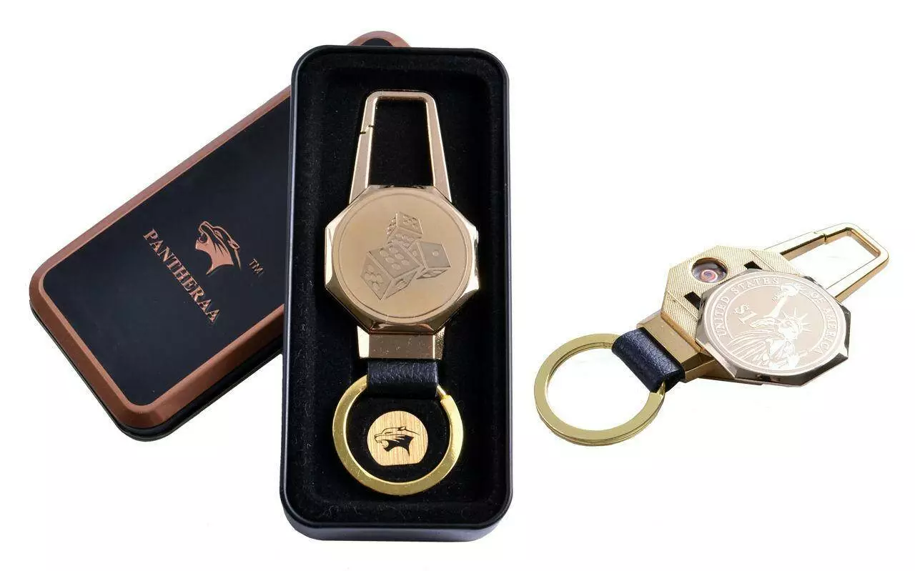 USB зажигалка в подарочной металлической коробке (брелок + фонарик) 4687C-3