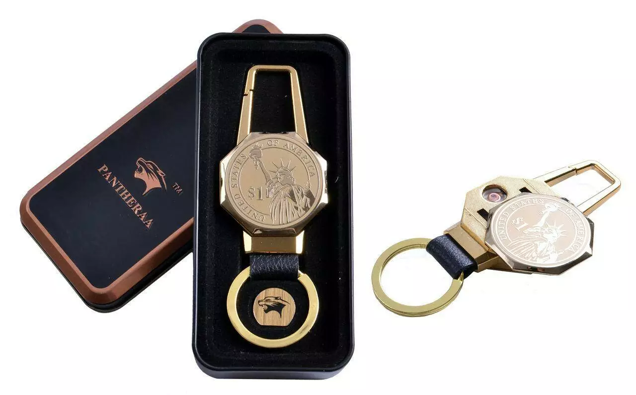 USB зажигалка в подарочной металлической коробке (брелок + фонарик) 4687C-4