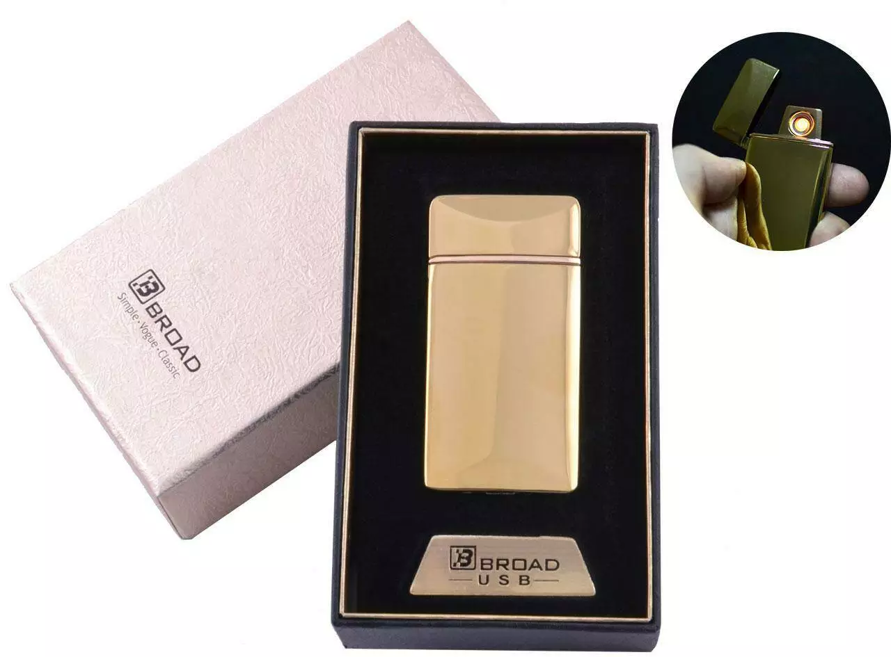 USB зажигалка в подарочной упаковке "Broad" (Двухсторонняя спираль накаливания) №4851 Gold