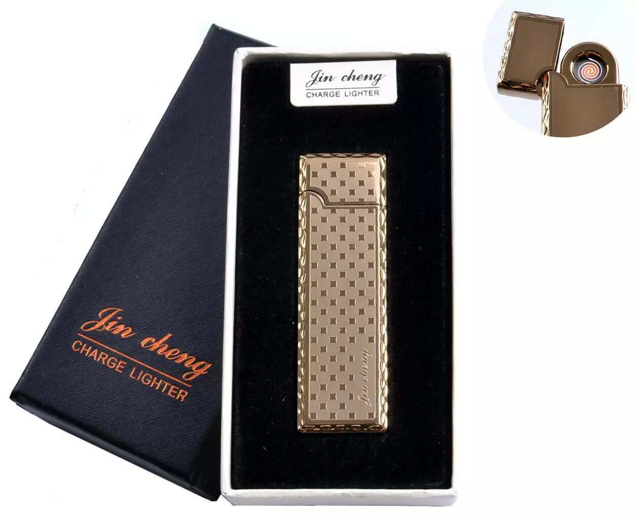 USB зажигалка в подарочной упаковке "Jin cheng" (двухсторонняя, спираль накаливания)