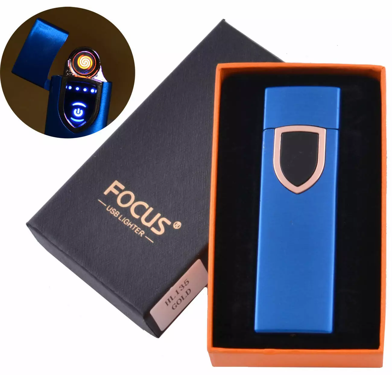 Сенсорная USB зажигалка ⚡️ в подарочной упаковке ???? FOCUS (Спираль накаливания) HL-135 Blue