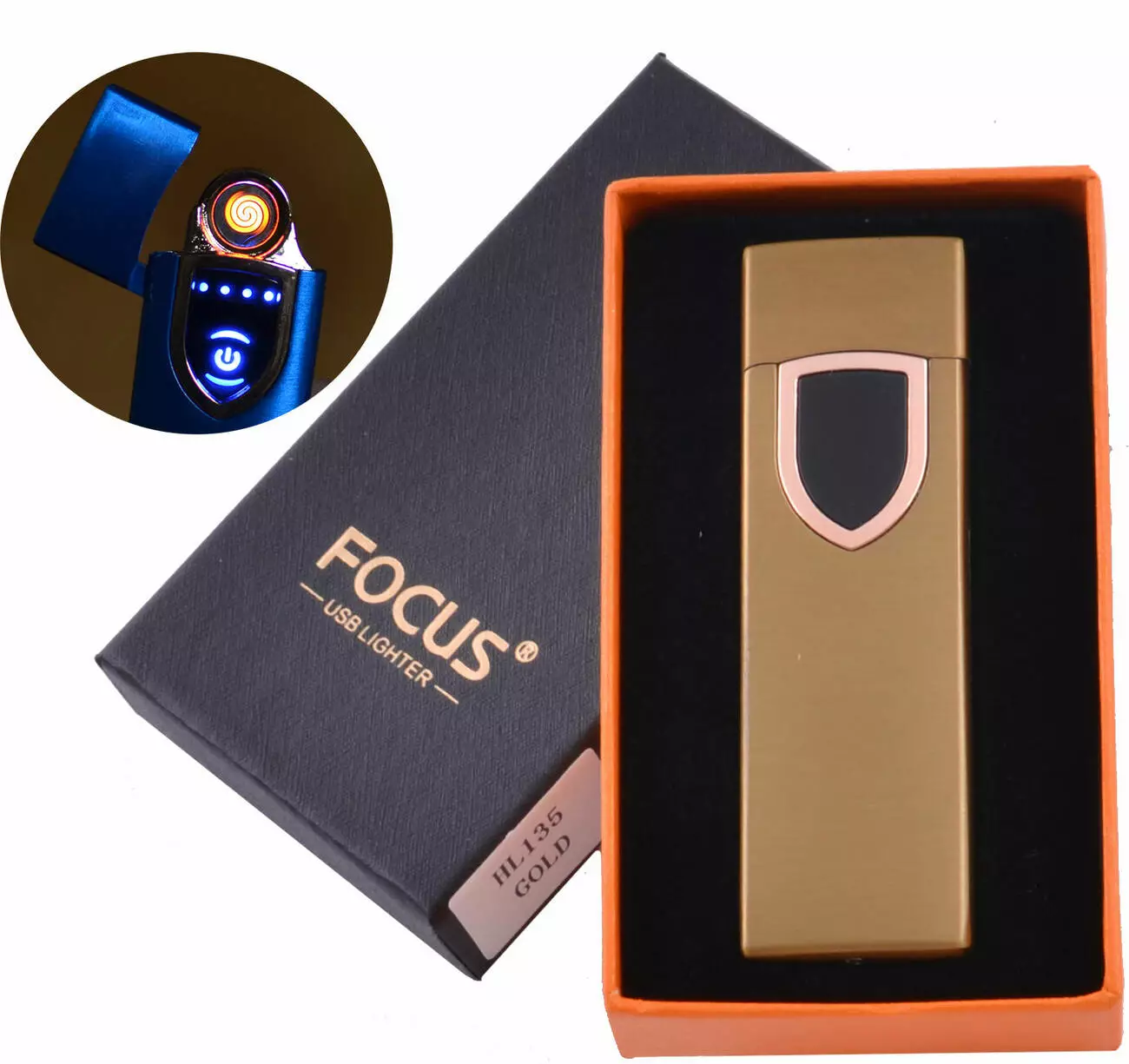 USB зажигалка в подарочной упаковке Lighter (Спираль накаливания) HL-135 Gold