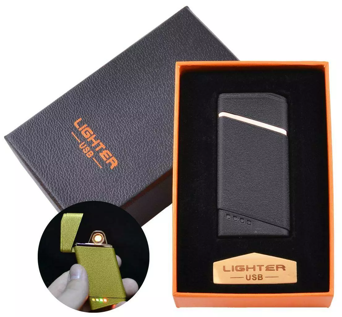 USB зажигалка в подарочной упаковке Lighter (Спираль накаливания) №HL-18 Black