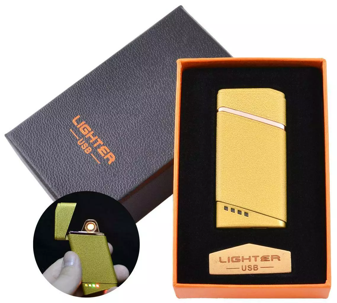 USB зажигалка в подарочной упаковке Lighter (Спираль накаливания) HL-18 Gold