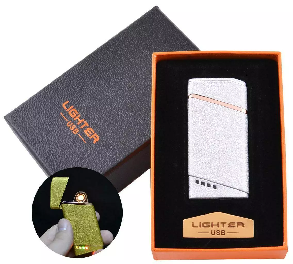 USB зажигалка в подарочной упаковке Lighter (Спираль накаливания) №HL-18 White
