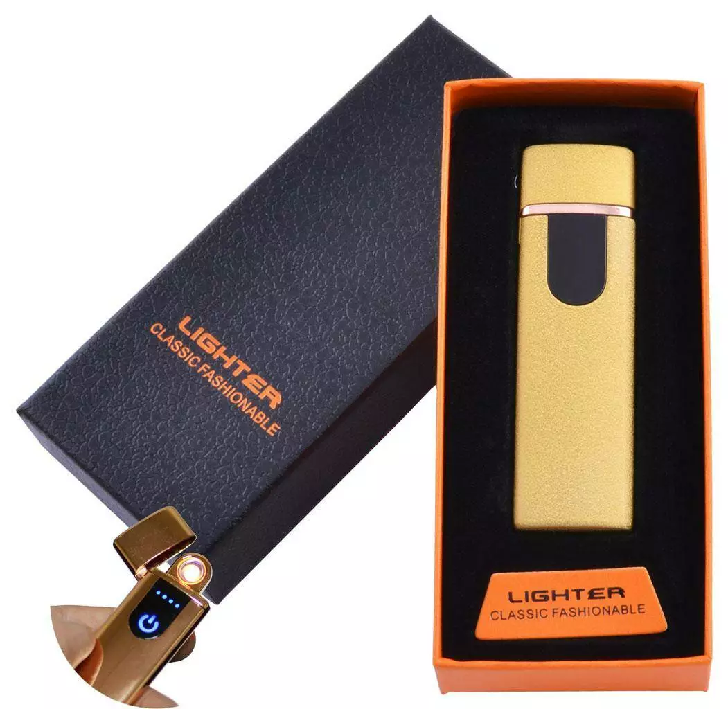 USB зажигалка в подарочной упаковке Lighter (Спираль накаливания) №HL-49 Gold