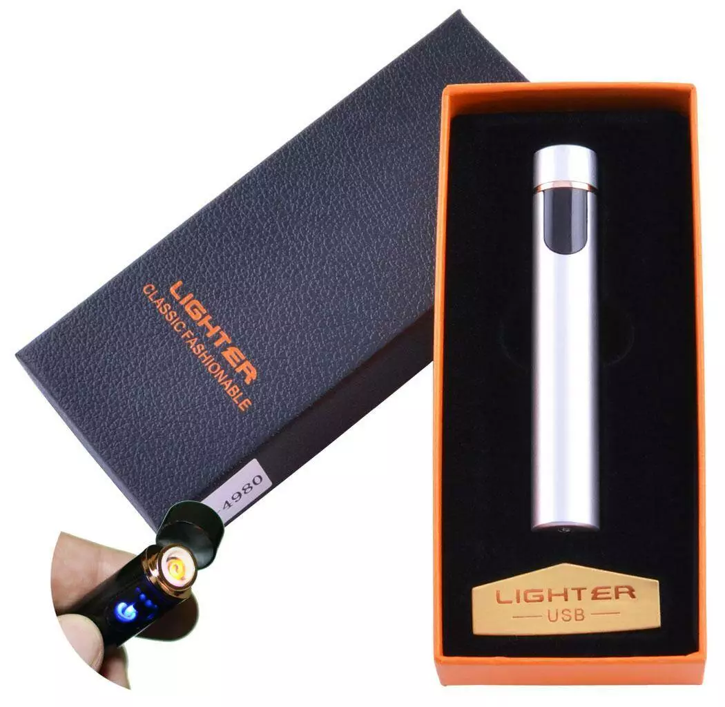 USB зажигалка в подарочной упаковке Lighter (Спираль накаливания) XT-4980 Silver