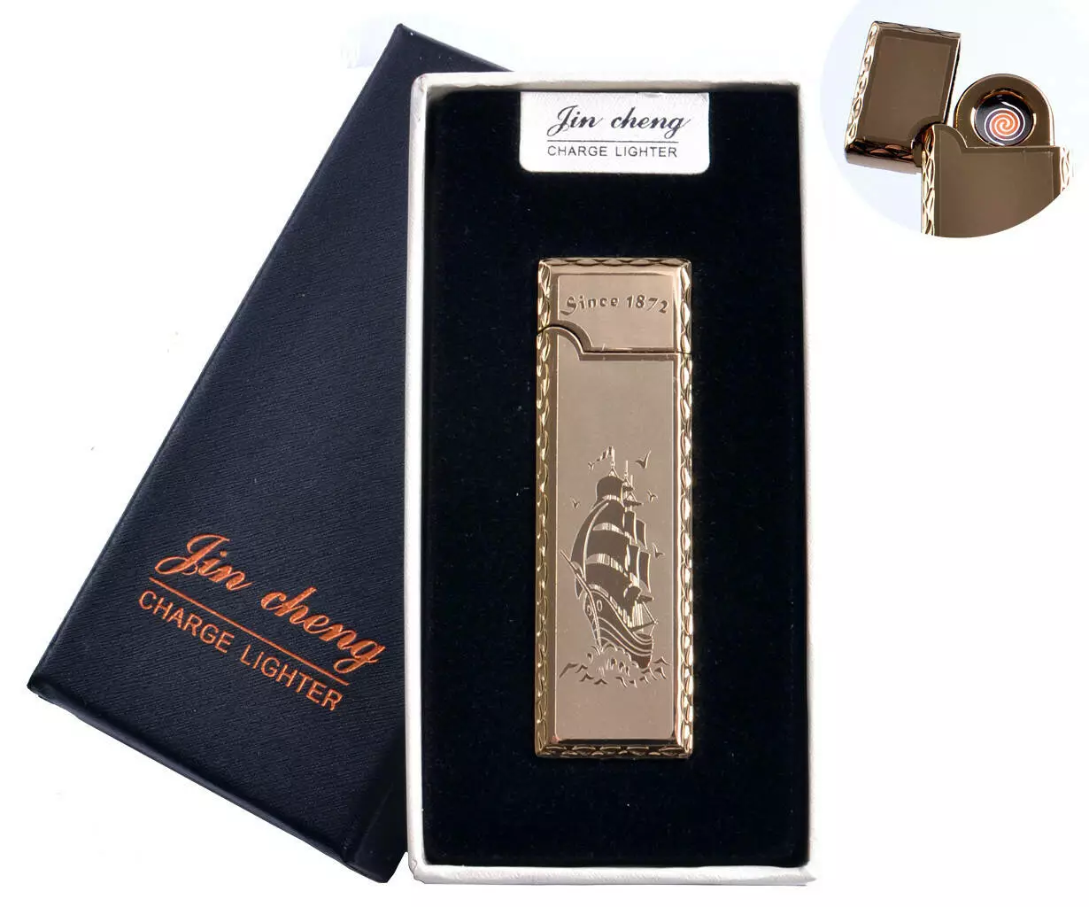 USB зажигалка в подарочной упаковке "Парусник" (двухсторонняя, спираль накаливания)