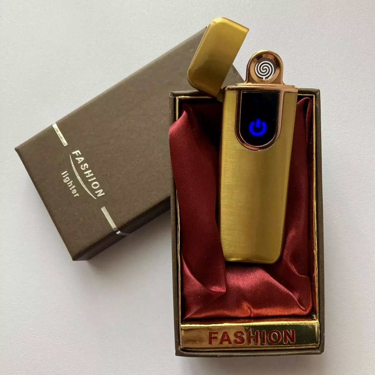 USB ⚡️ Зажигалка с подсветкой FASHION в подарочной упаковке (Спираль накаливания) USB-101 Gold