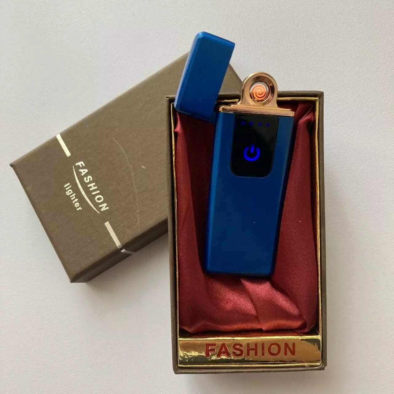 USB ⚡️ Зажигалка с подсветкой FASHION в подарочной упаковке (Спираль накаливания) USB-102 blue