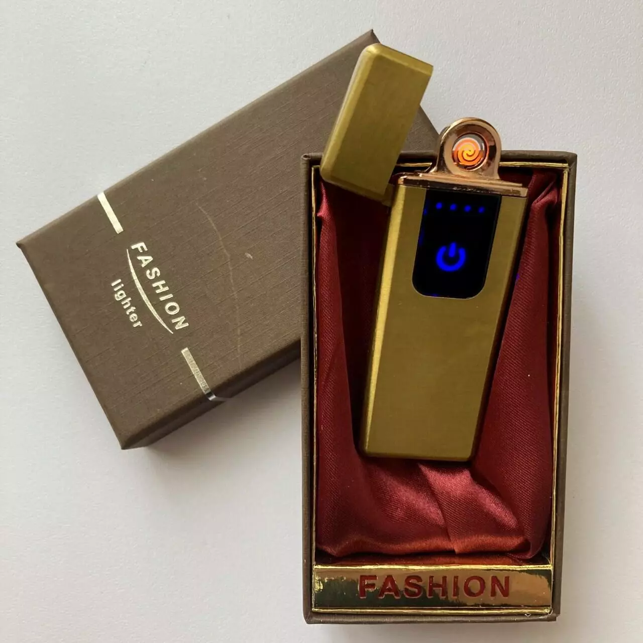 USB ⚡️ Зажигалка с подсветкой FASHION в подарочной упаковке (Спираль накаливания) USB-102 Gold