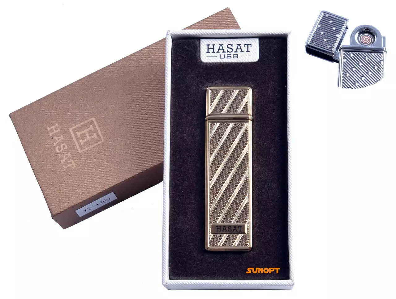 USB зажигалка в подарочной упаковке "Hasat" (Двухсторонняя спираль накаливания) №4800-4