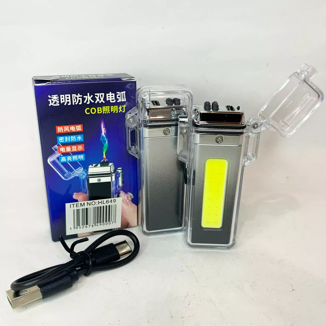 Водонепроницаемый COB-фонарь с зажигалкой и двойной дугой ⚡⚡ HL-649 Gray