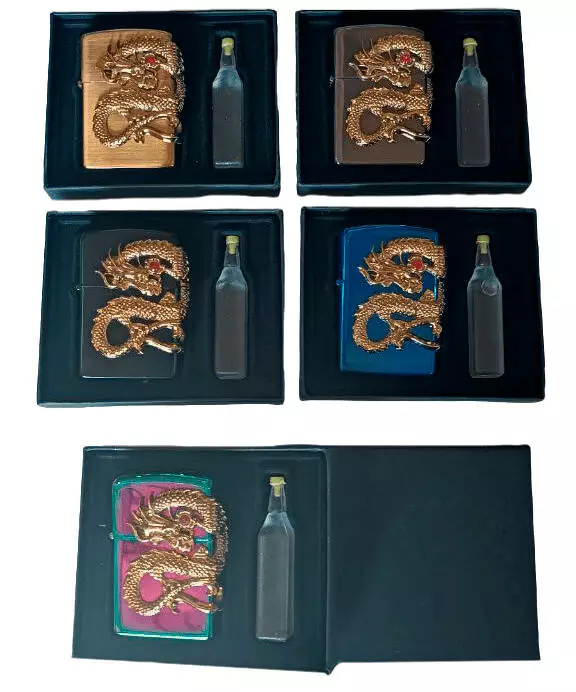 Зажигалка бензиновая "Дракон" в подарочной коробке + баллончик бензина HL-372-1