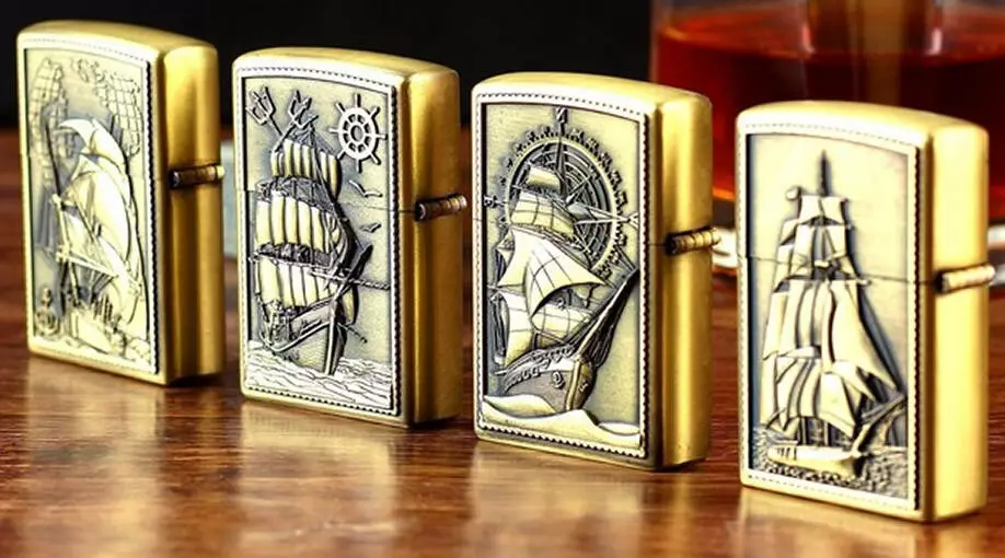 Зажигалка бензиновая "Корабли" JINTAI D457