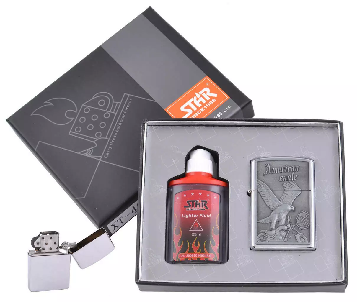 Зажигалка бензиновая в подарочной коробке + баллончик бензина) American Eagle XT-4933-3