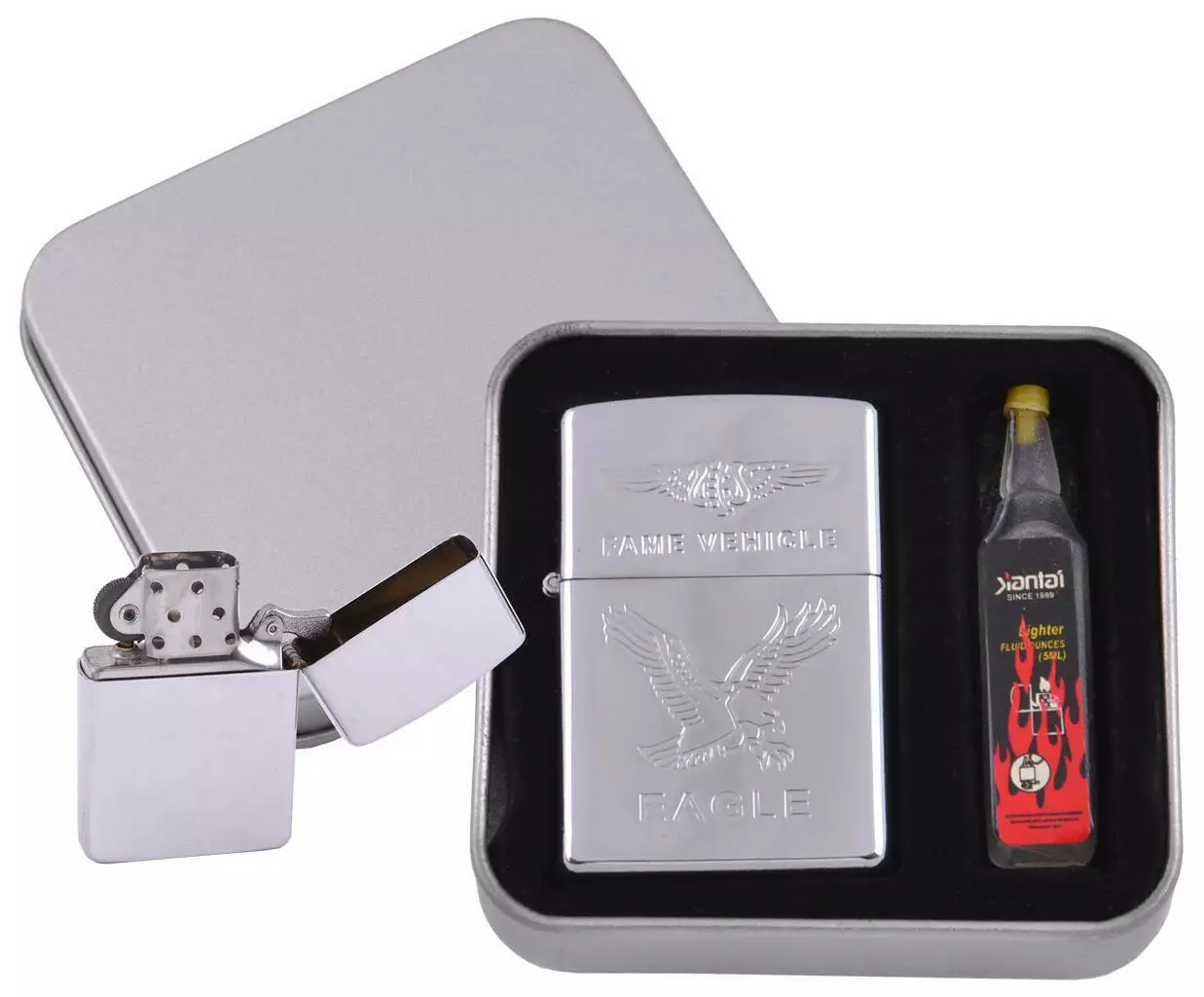 Зажигалка бензиновая в подарочной коробке + баллончик бензина EAGLE XT-3861-3