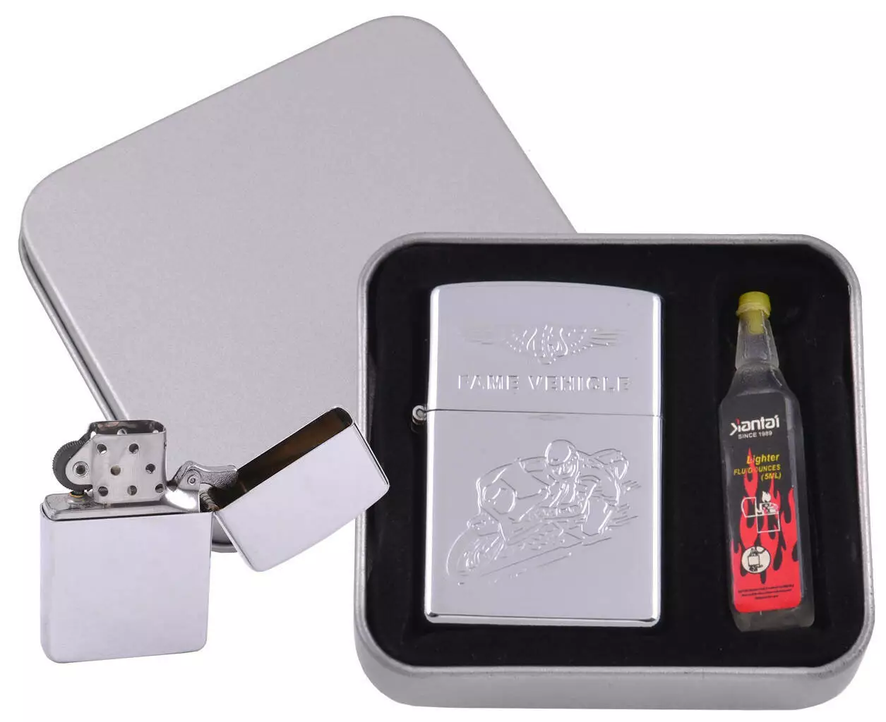 Зажигалка бензиновая в подарочной коробке + баллончик бензина FAME VEHICLE HL-3861