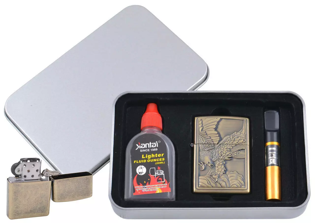 Зажигалка бензиновая в подарочной коробке (Баллончик бензина/Мундштук) Орел на охоте XT-4711-4