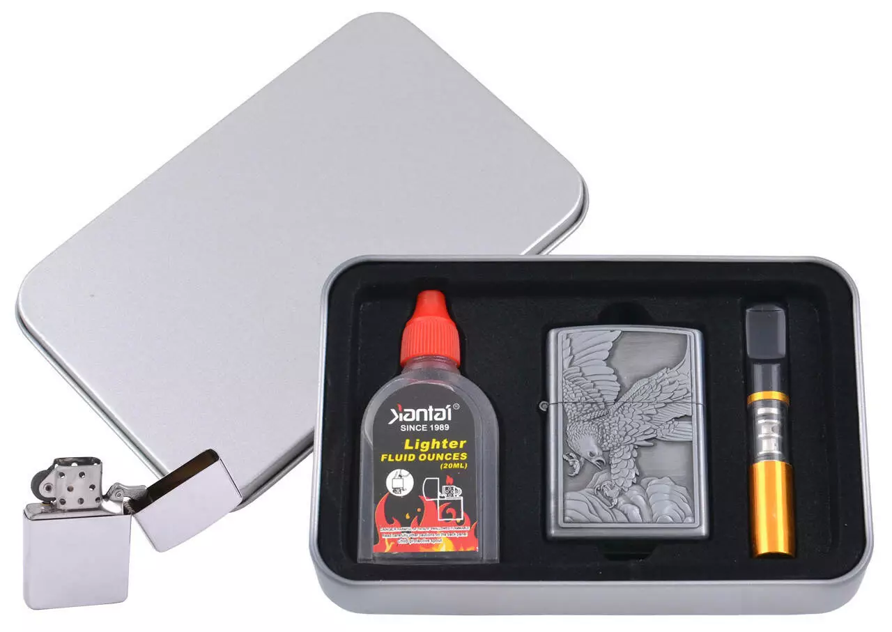 Зажигалка бензиновая в подарочной коробке (Баллончик бензина/Мундштук) Орел на охоте XT-4711-8