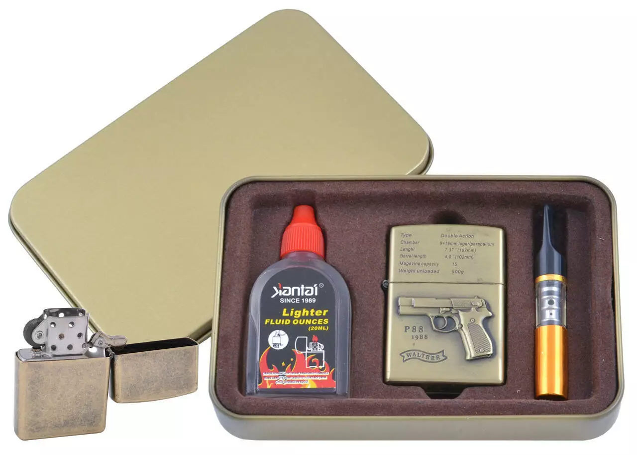 Зажигалка бензиновая в подарочной коробке (Баллончик бензина/Мундштук) Пистолет P88 XT-4716-3
