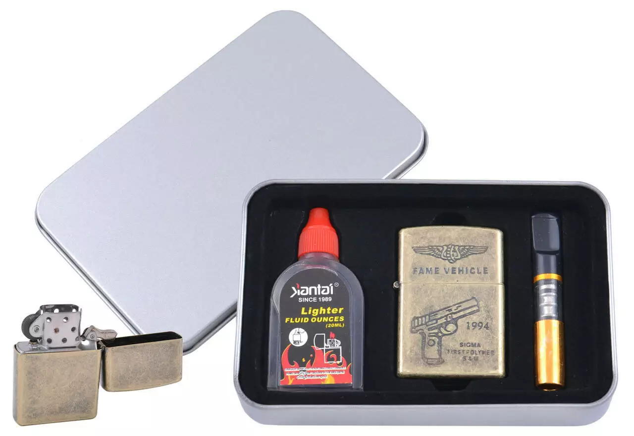 Зажигалка бензиновая в подарочной коробке (Баллончик бензина/Мундштук) Пистолет XT-3865-3