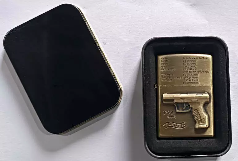 Зажигалка бензиновая в подарочной коробке "Пистолет Walther P99" HL-332