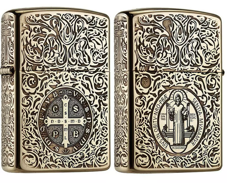 Зажигалка бензиновая ZORRO 'VRSNSMV SMQLIVB' Медальон Св. Бенедикта