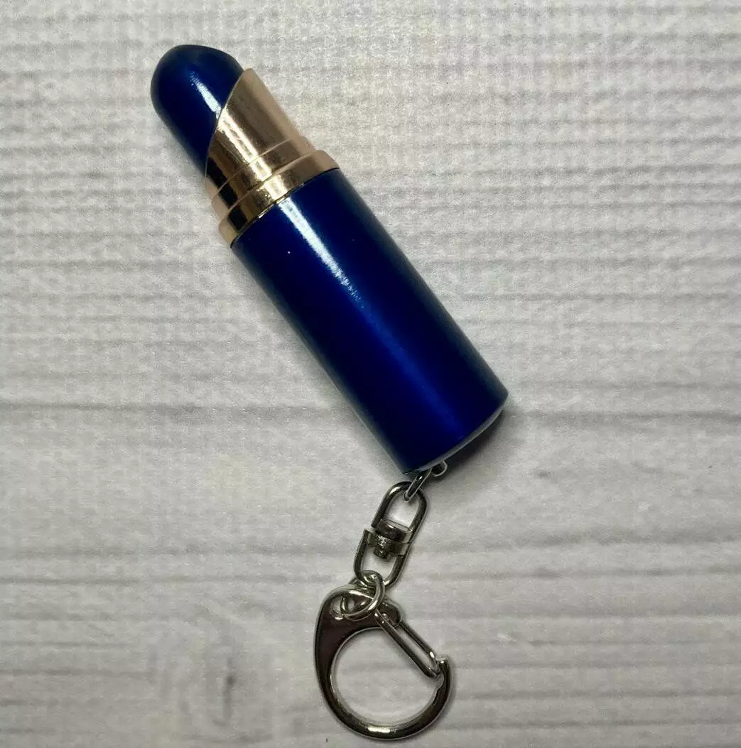 брелок "Помада" выполнена из металла и имеет синий цвет.