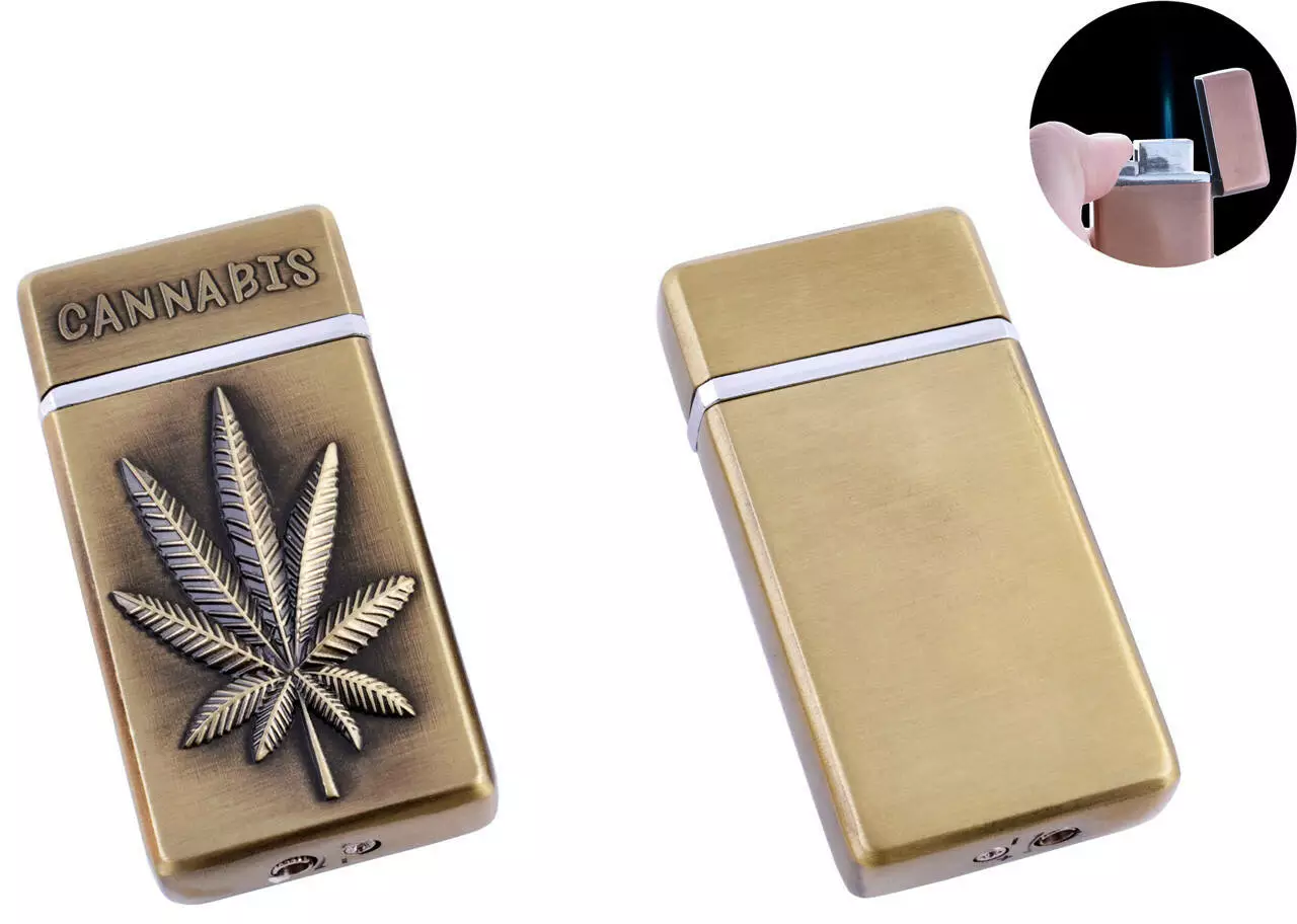 Зажигалка карманная Канабис (Острое пламя) №4908 Gold