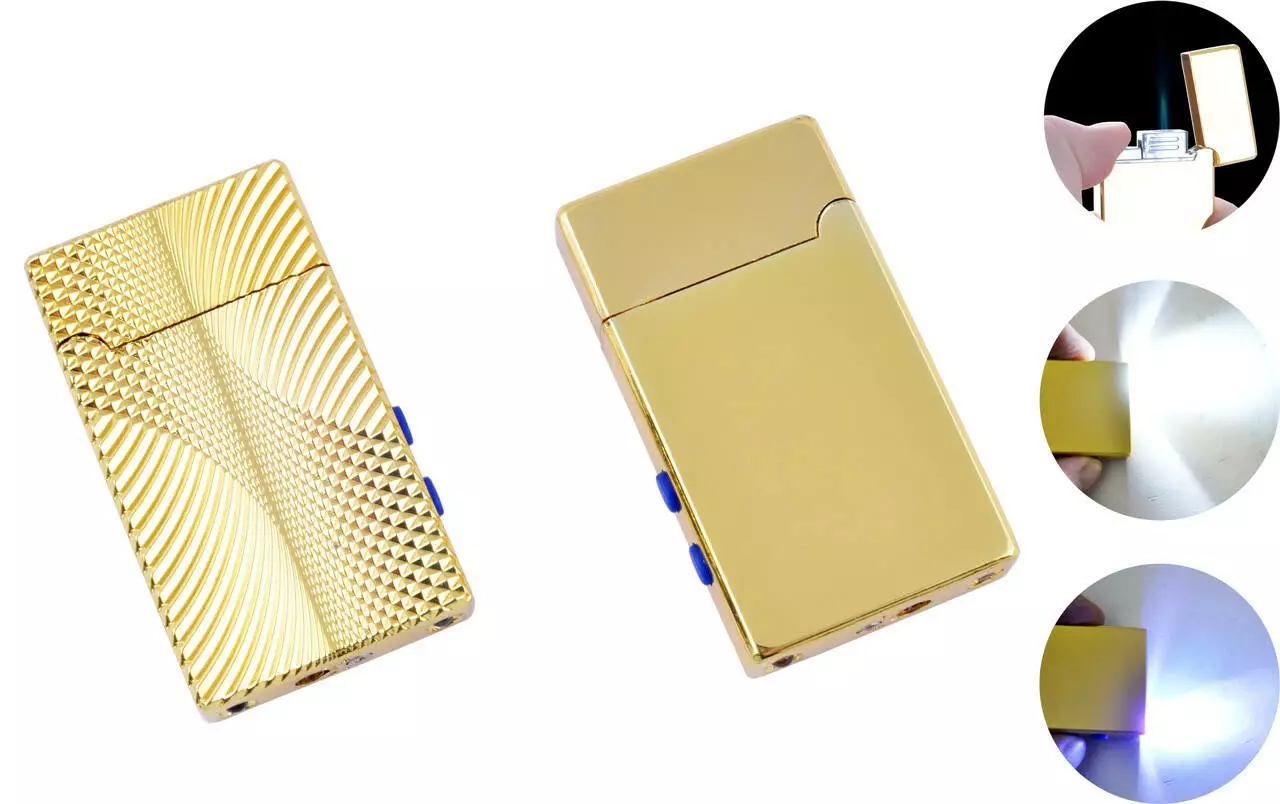 Зажигалка карманная турбо с фонариком "Classic" (Острое пламя) №4855 Gold
