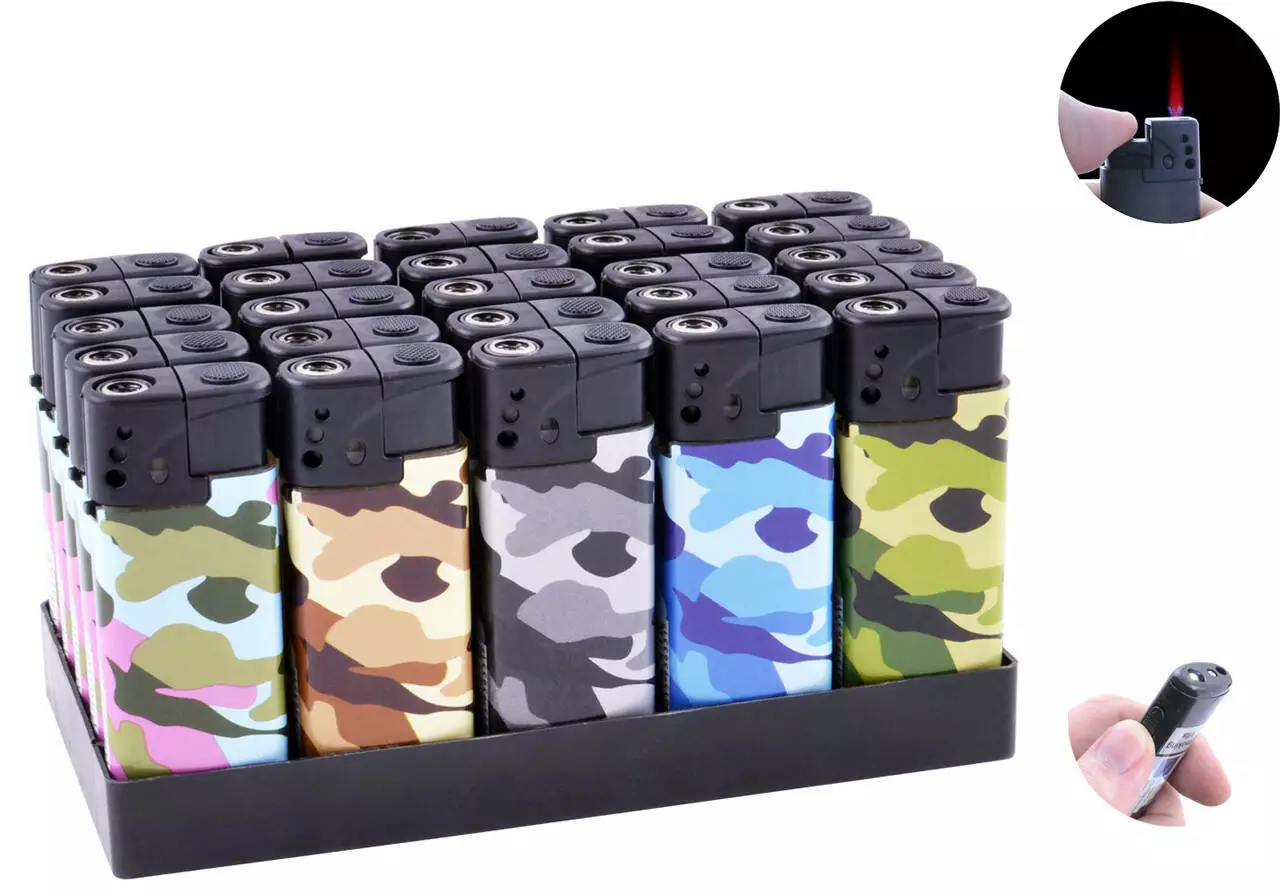 Зажигалка пластиковая с фонарем Камуфляж (турбо пламя) 1309-1