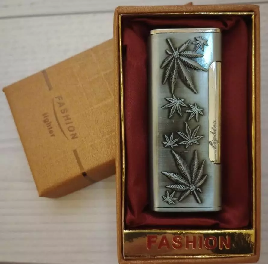 Зажигалка подарочная (острое пламя ????) "Конопля" Fasion D148 Silver