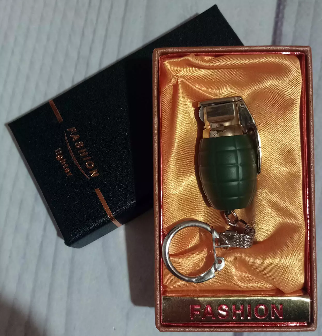 Зажигалка подарочная кремниевая с брелком (Обычное пламя????) выполнена по типу гранаты модели «Ф-1» "FASHION" D292-1