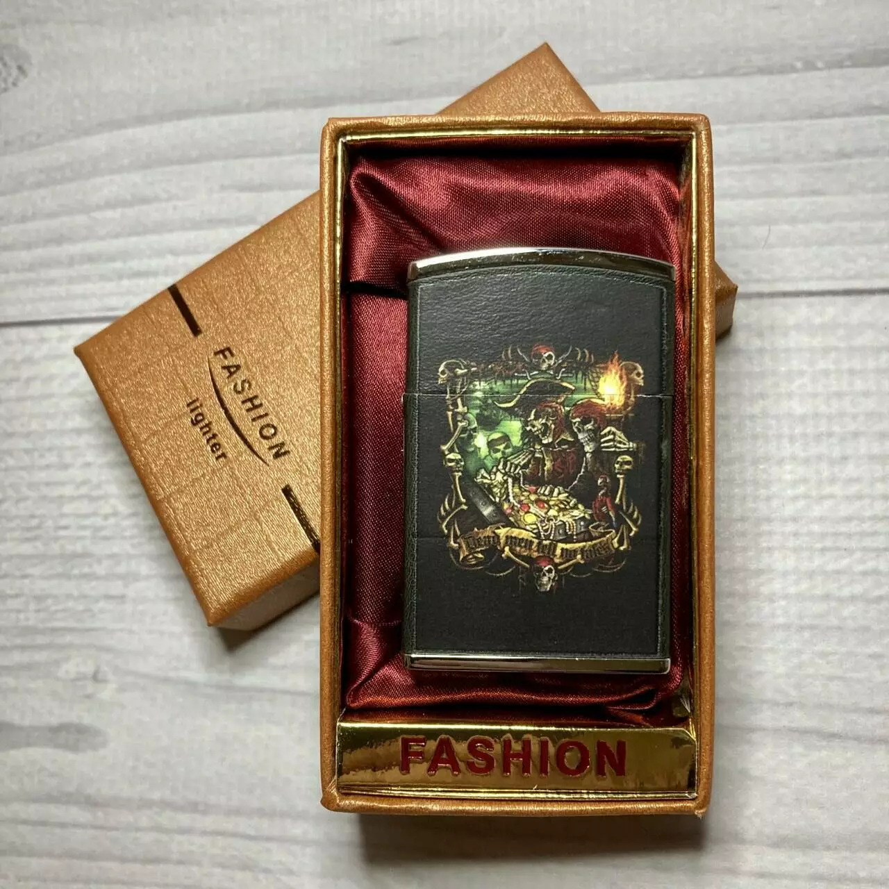 Зажигалка подарочная Пират (обтянута кожей, турбо пламя ????) FASHION D41-2