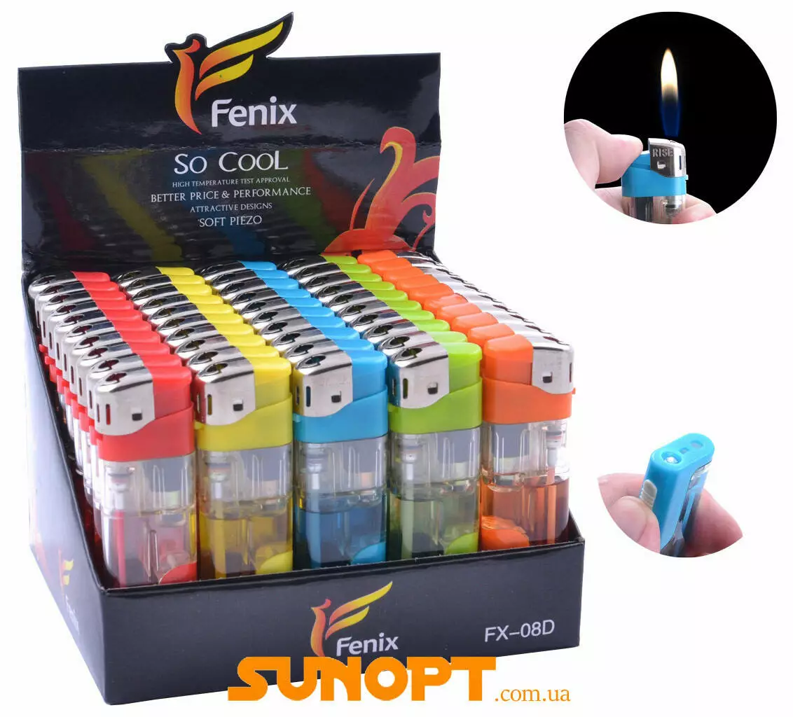 Зажигалка пьезо с фонариком Прозрачная разноцветная FENIX LIGHTER ???? (1000шт/ящ) №288-47