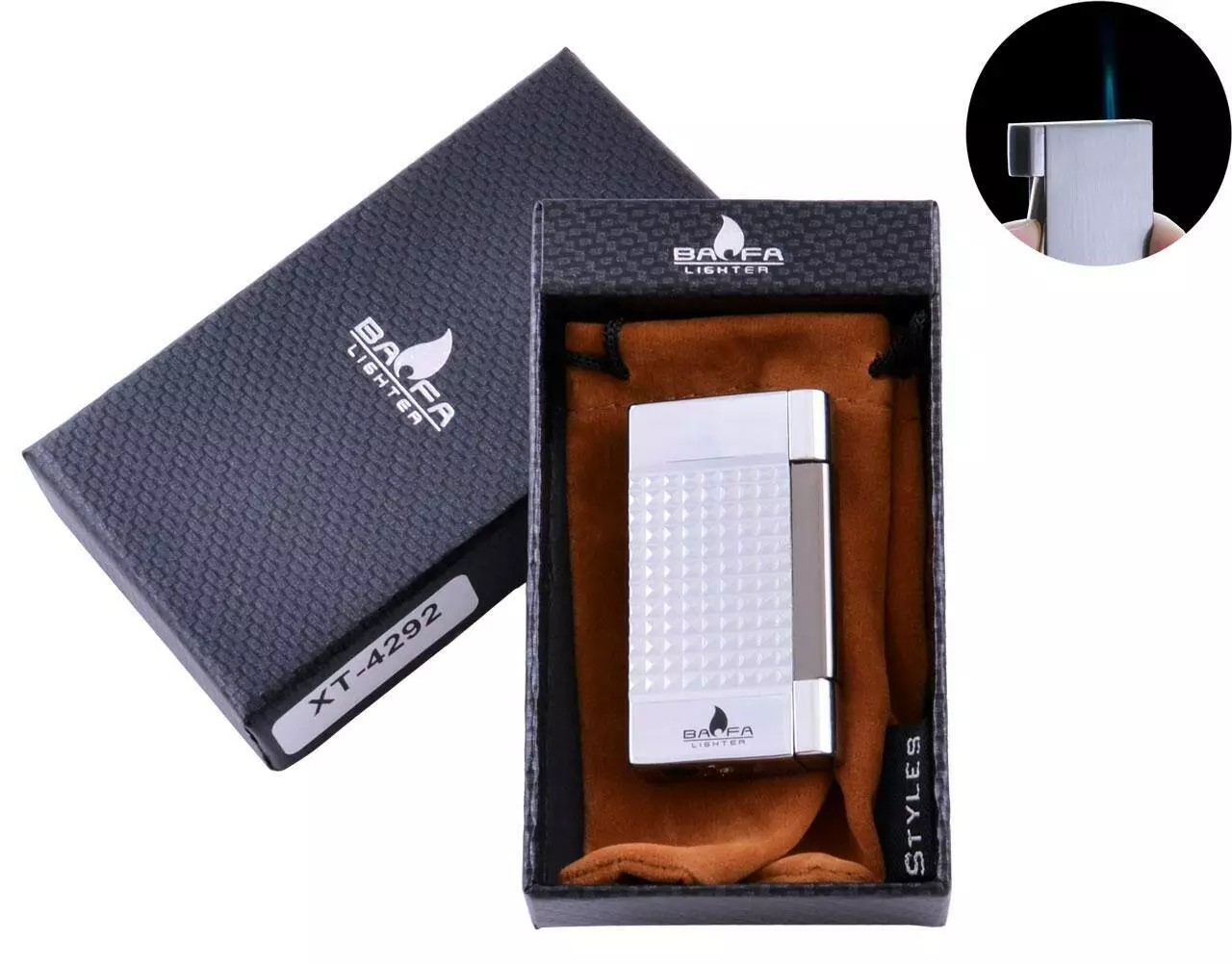 Зажигалка в подарочной коробке BAOFA (Острое пламя) №4292 Silver