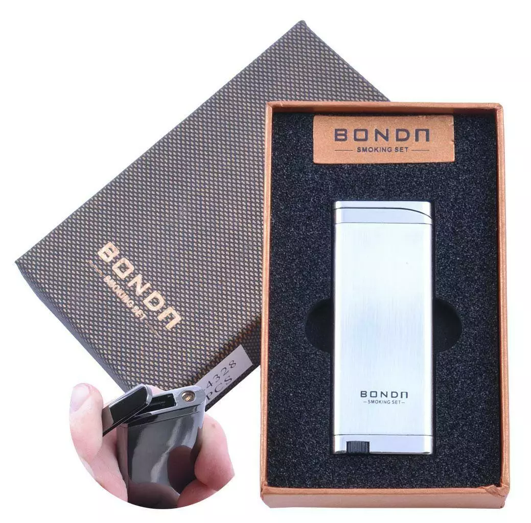 Зажигалка в подарочной коробке Bondn (Турбо пламя) №4328 Silver