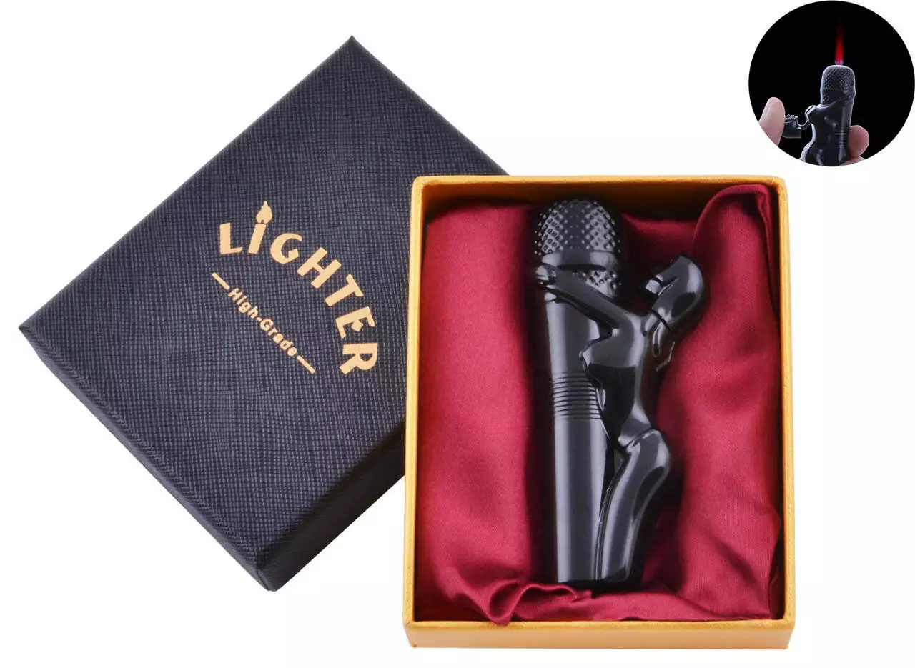 Зажигалка в подарочной коробке Девушка на Микрофоне (Турбо пламя) XT-61 Black