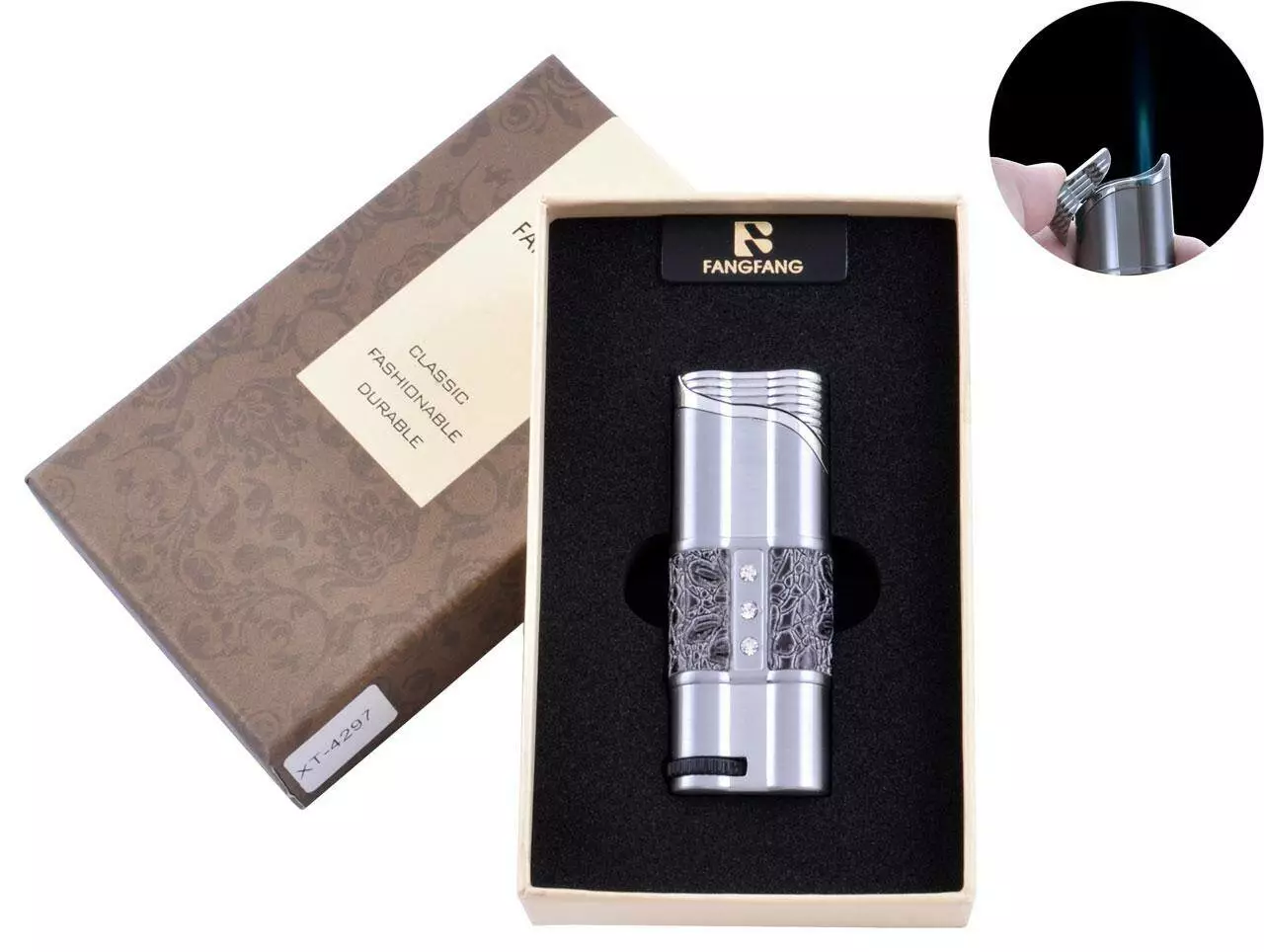 Зажигалка в подарочной коробке FANGFANG (Острое пламя) №4297 Silver
