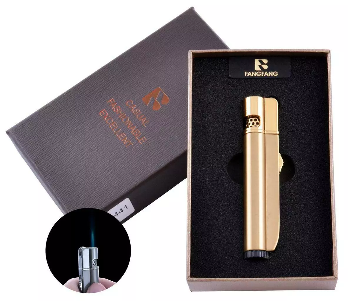Зажигалка в подарочной коробке FANGFANG (Острое пламя) №4441 Gold