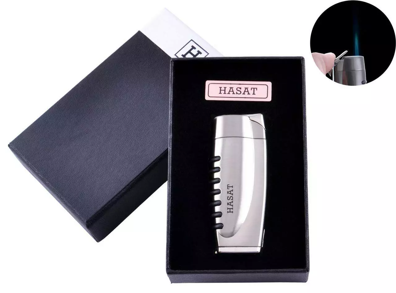 Зажигалка в подарочной коробке HASAT (Острое пламя) №4311 Silver