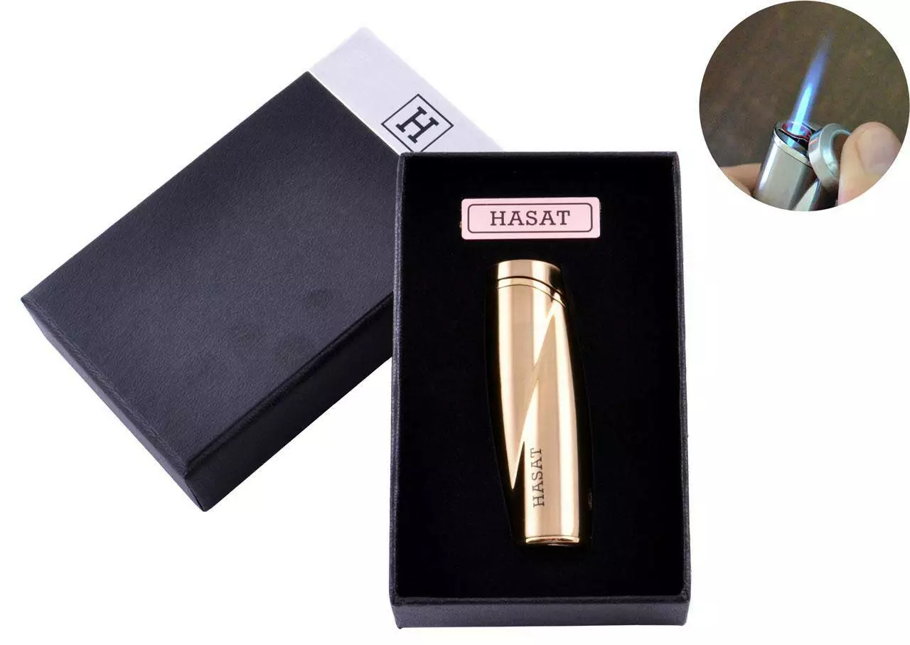 Зажигалка в подарочной коробке HASAT (Острое пламя) №4313 Gold