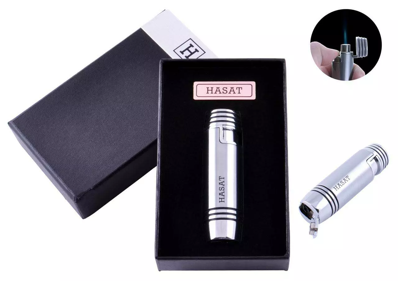 Зажигалка в подарочной коробке HASAT (Острое пламя) №4316 Silver