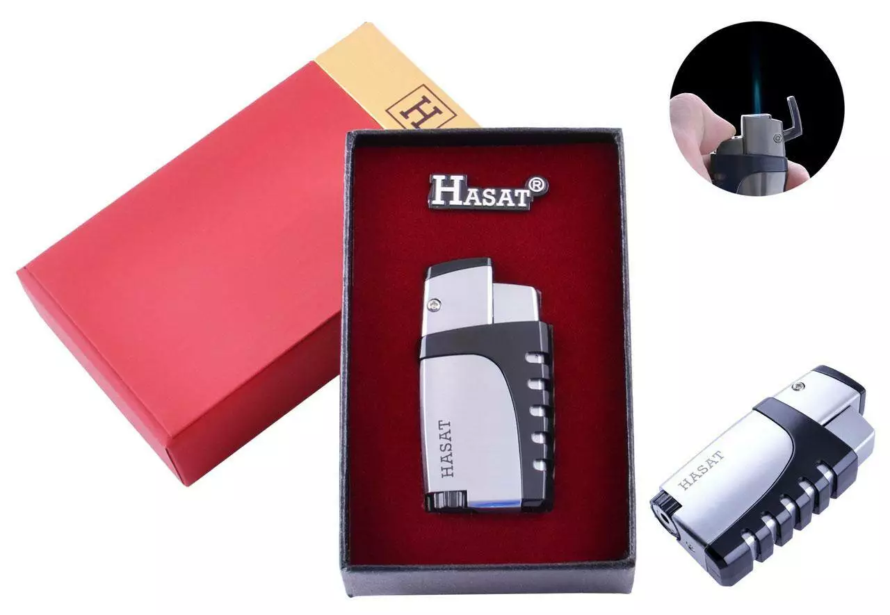 Зажигалка в подарочной коробке HASAT (Острое пламя) №4318 Silver